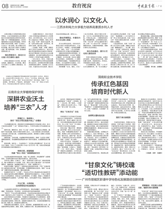 榜样引领,精神传承。依托“红土地”大讲堂、事迹报告会等载体,激励学子扎根边疆、服务乡村振兴的持久动力,入选全国党建工作标杆院系、全国党建工作样板支部、全国教育系统先进集体、教育部门立德树人机制综合改革试点单位。