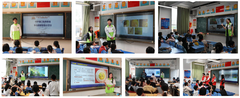 活动中,主讲团队围绕“什么是国家安全”“生物安全与我们息息相关”“外来入侵生物有哪些”“植物检疫怎么做”等主题,结合生动图片、短视频和实物标本,以通俗易懂的语言向小学生们讲解了国家安全的基本内涵、生物安全的重要性以及常见外来入侵物种如草地贪夜蛾、红火蚁、松材线虫等的危害。宣讲还设置了“生活小剧场”情景互动环节,通过“旅行归来”“神秘包裹”“公园放生”等贴近生活的场景,引导小学生理解“不随意携带入境动植物”“不购买邮寄异宠”“不随意放生”等维护国家生物安全的具体行为规范。