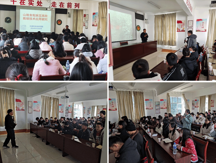 师生开展了一场《山地食粒豌豆高效栽培技术应用研究》的讲座,结合玉溪市的土壤情况开展适应山地的豌豆种植技术的讲解。在师生互动环节,学生积极提问,杨副院长对提问进行了耐心地回答。并且鼓励植保专业的学子,要用“植保”的思维去解决农业生产问题及食品安全问题。