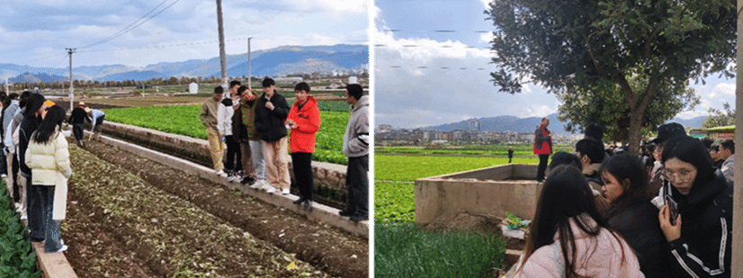 下午,杨副院长带领师生参观了玉溪市农科院高原特色农业科研试验示范基地。早已在基地等候的玉溪市农科院的各位专家为大家介绍了油菜、豆类、中草药、花卉及小麦6种作物相关的育种和栽培研究等技术指导。