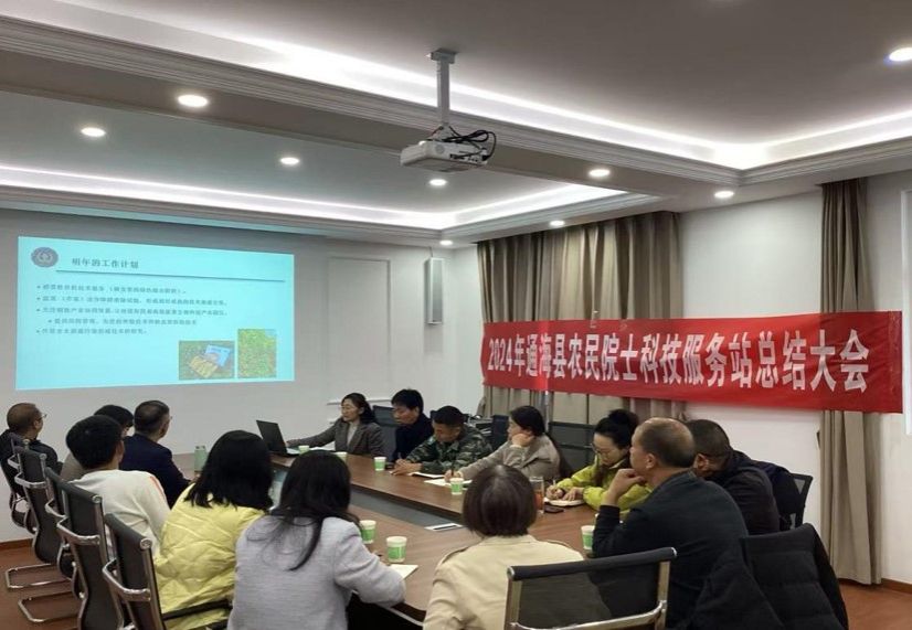 、通海县农业农村局、六一社区、大树社区和通海县农业科技公司的领导、专家、企业家参加会议。李铷站长对2024年的工作进行总结,并提出2025年的工作计划。通海县农业农村局高建飞副局长指出,农民院士科技服务站落地通海,有力促进了通海县农业产业发展。与会人员肯定了服务站2024年的工作成绩,分析了存在的困难,讨论了2025年的工作计划。社会服务处张天顺副处长介绍了农民院士科技服务站设立的初衷,鼓励专家团队积极驻站开展科技服务,围绕农业产业的关键节点进行研究和技术攻关,打通成果转化的“最后一公里”。他希望服务站积极向相关部门申报项目,与企业充分交流沟通,转化科研成果,增强自身的造血功能。