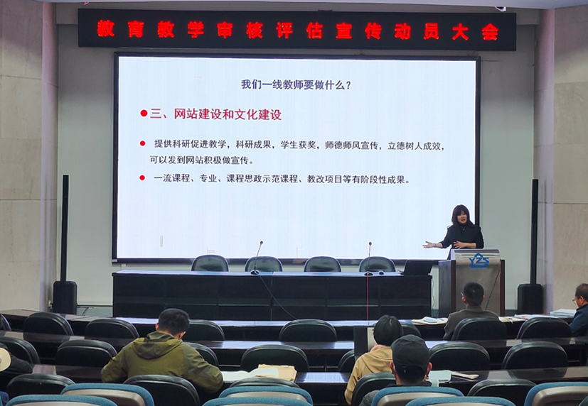 其次,蔡红院长号召全体教职工尤其是一线教师,树立“以评促建、迎评有我”的大局观,积极配合完成教学档案整理和规范,做好网站建设和文化建设等,齐心协力做好迎评工作。