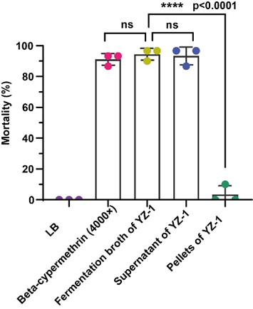 图1.枯草芽孢杆菌YZ-1不同组分对黄粉虫的杀虫活性