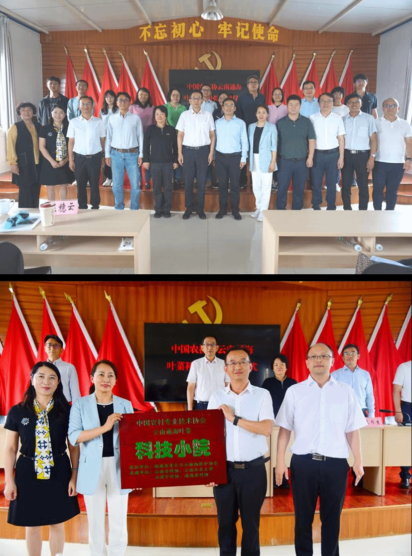 2023年8月3日,由云南农业大学与民盟云南省委员会共建的通海叶菜科技小院挂牌仪式在通海县秀山街道大树社区隆重举行。在挂牌仪式上,云南省科学技术协会少数民族科普工作队队长屈钊宣读了中国农村专业技术协会批准成立云南省通海叶菜科技小院的批复文件。举行了授牌仪式。云南省科协副主席袁晓塘代表云南省科学技术协会为通海县叶菜科技小院授牌。授牌后,云南农业大学副校长朱书生代表云南农业大学、通海县县委副书记温鹏代表通海县叶菜科技小院发表讲话,云南省人大常委会副主任、民盟云南省委主任徐彬到位,并做总结讲话。