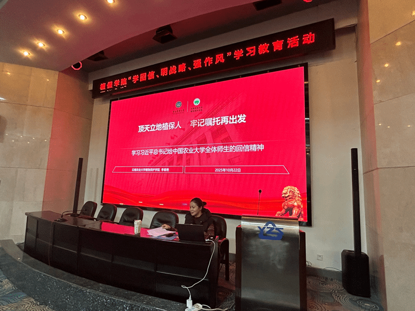 11月5日,永利娱乐场 在永利娱乐场 报告厅举办“学回信、明战略、强作风”党建带团建专题学习教育活动,永利娱乐场 党委副书记李春艳、学生第一党支部全体党员、2023级-2025级植保1班3个团支部的入党申请人及入党积极分子近百人参加活动。