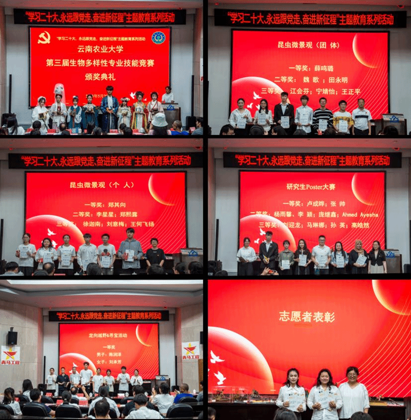 本次活动设置了研究生Poster大赛、昆虫微景观等4个赛区,昆虫、杂草标本展示、植物种子宣传展示等10余个展区。活动的参赛师生近900人,获奖人数110人,据不完全统计各项比赛线上线下围观人数高达十余万人,为云农学子呈现了一道前所未有的饕餮盛宴,也积极展示了云农学子的蓬勃朝气。