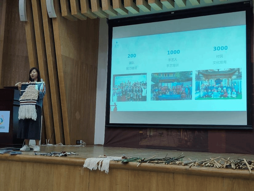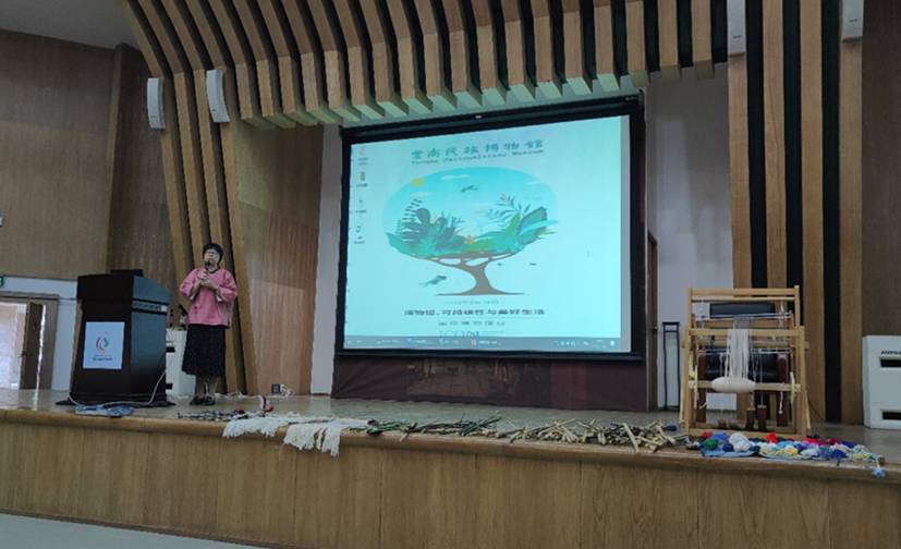 首先,白族扎染技艺州级非物质文化遗产代表性传承人、大理市蓝续文化发展有限责任公司主理人张翰敏进行了题为“让‘非遗’绽放时代芳华---大学生返乡创业 非遗赋能美好生活”的演讲,分享了其团队从北京辞去稳定工作回到家乡大理周城村传承白族传统独特扎染文化和技艺的故事,展现了民族“非遗”的独特魅力。现场同学认真聆听,深受感染。