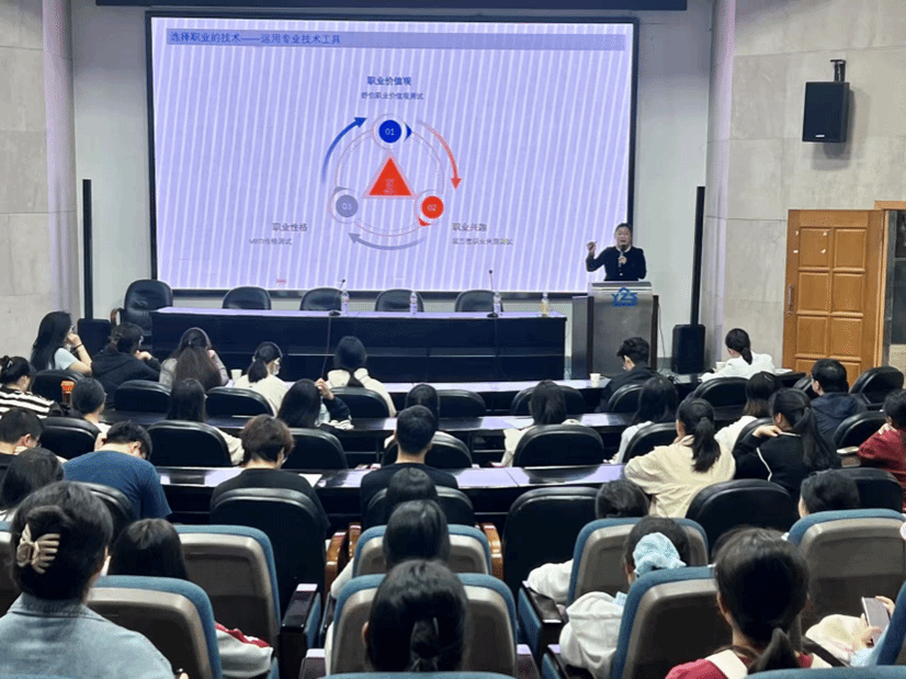 报告厅为大四、大三学生开展简历制作与求职面试技巧专题培训。其结合多年招聘实战经验,针对本次大赛中学生简历制作存在的问题,围绕选择职业的技术、简历制作技术、面试流程、常见问题应对等关键环节进行了深入讲解。她强调,一份优秀的简历是敲开企业大门的“敲门砖”,而面试则是展示综合素质、实现双向选择的重要舞台。培训中,杨潇楠通过真实案例剖析了求职者在面试中常见的误区,指导学生如何进行精准的自我介绍、如何在压力面试中保持冷静与自信。现场气氛热烈,互动不断、成效显著。