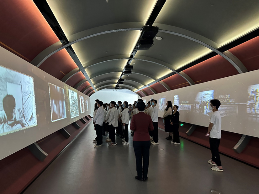 随后,师生们步入360°环绕展厅,聆听革命先辈们的热血宣言和感人故事。许多云南本土的革命烈士,如聂耳、闻一多等,在风华正茂的年纪为革命献身,最小的甚至只有二十多岁。正如同学们一般的青春岁月,却在民族救亡中舍生取义,同学们深受触动,陷入沉思。