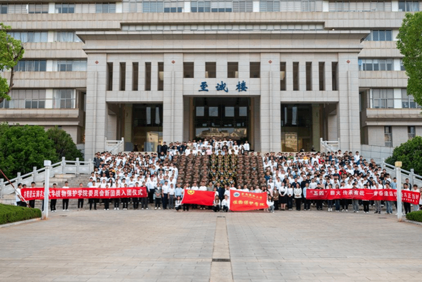 委员会新团员入团仪式。蔡红为新团员颁发团徽和团员证,新团员代表范佳音、优秀团员代表钟爰爰、党员代表飞晓依次发言。最后,展示了植保院“红色快闪”特色活动---诗歌朗诵《少年中国说》(片段)以及师生合唱《蒿枝坝的花儿开了》。