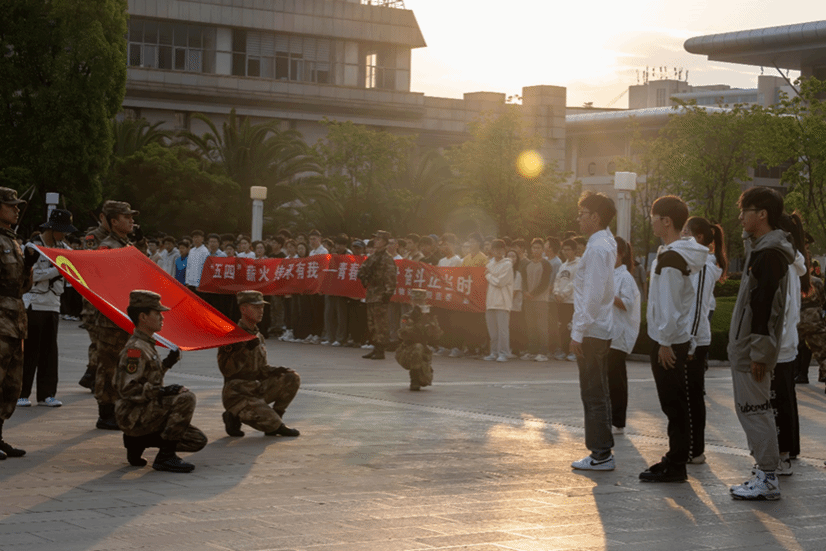于4月29日清晨,在至诚楼前组织开展了“五四薪火 传承有我”第五期“在国旗下集合”活动。