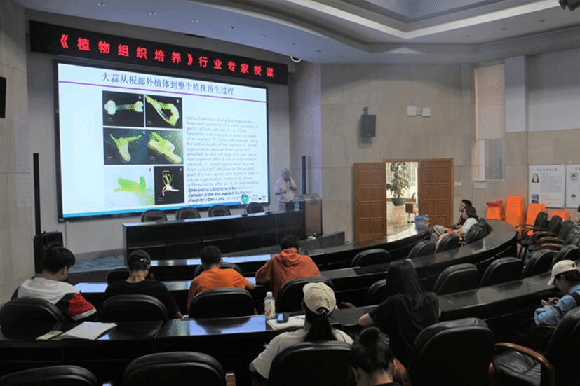 郑泗军研究员将课程理论与研究实例相结合,采用了互动性很强的问答式教学法,使同学们积极参与到课程互动中来,授课效果良好。此次授课不仅加深了同学们对植物组织培养技术在农业科研与生产中的应用的了解,还对同学们学业和职业发展方面起到了积极的指导作用。