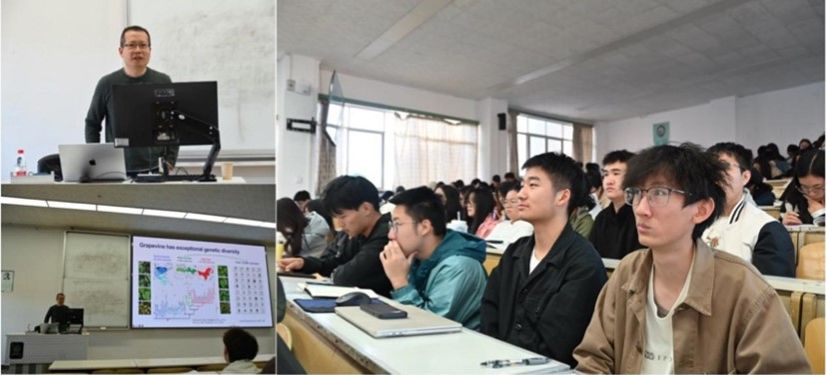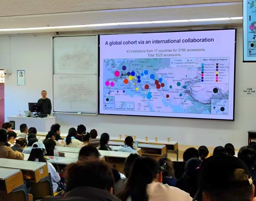 1114日,永利(澳门)娱乐场官网 《遗传学》课程组特邀云南省高原特色农业产业研究院陈玮教授为2023级近230名师生带来了一场题为狄俄尼索斯的礼物:葡萄进化和驯化的故事的精彩讲座。本次讲座旨在拓展学生学术视野、追踪遗传学前沿动态、引导学生探索遗传研究兴趣。